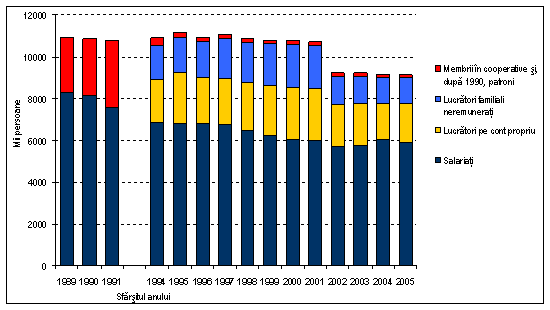 Figura 5. Numarul persoanelor ocupate īn functie de statut, Romānia 1989-2005