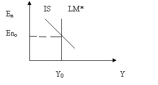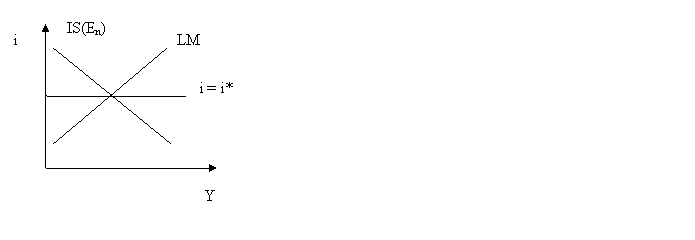 Pentru cazul cīnd rata dobīnzii interne (i) este constanta si egala cu i* modelul Mundell-Fleming īn coordonatele Y si En este reprezentat īn grafic astfel: