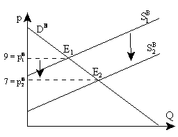 Fig. 2.2. Cresterea numarului de afaceri intr-o ramura, mareste cererea factorilor de productie, scumpind oferta |