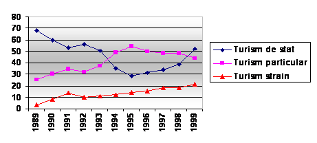 Astfel pe langa deschiderea granitelor, care i-a atras pe cei mai instariti dintre romani, cei mai nevoiasi aveau acum o alternativa. Fosta retea nationala de turism ce detinea monopolul a intrat intr-o mare criza, pentru ca acum existau alternative. Cu exceptia hotelurilor de la mare, nimeni nu mai era incantat de a petrece o vacanta intr-o statiune la hotel.