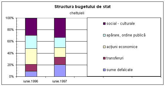 Cheltuielile bugetului de stat s-au ridicat în primul semestru la 20372 miliarde lei, reprezentând 39 la suta din prevederile anului 1996. Aproape o treime din cheltuieli au fost orientate catre sectorul social - cultural (6513 miliarde lei), din care peste 41 la suta au fost destinate învatamântului.