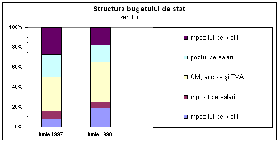 Analizând structura veniturilor bugetului de stat comparativ cu primul semestru al anului 1997, se remarca o crestere cu 9 puncte procentuale a ponderii veniturilor din impozitele indirecte în totalul veniturilor.