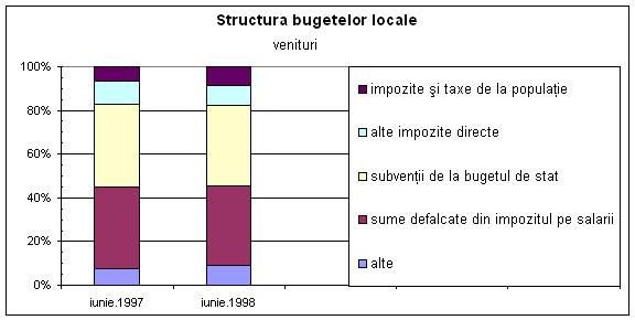 La capitolul venituri, s-a urmarit modificarea structurii acestora, prin majorarea ponderii veniturilor din impozitele indirecte (de la 7,8 la suta în anul 1997 la 10,8 la suta din PIB în anul curent) si reducerea ponderii veniturilor din impozitele directe (de la 8,2 la suta la 4,9 la suta din PIB), în paralel cu o anticipare prudenta a veniturilor din privatizare (2 la suta din PIB).