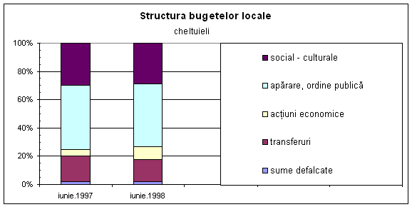 La partea de cheltuieli, se remarca reducerea cheltuielilor alocate agriculturii, cu peste 630 de miliarde lei, comparativ cu trimestrul precedent, când au fost distribuite fonduri importante pentru lucrarile de primavara. În schimb, cheltuielile social - culturale s-au majorat, în special cheltuielile pentru învatamânt, care în luna iunie au cunoscut aproape o dublare fata de luna anterioara (de la 478,6 miliarde de lei, la 858,3 miliarde lei), ca urmare a platii indemnizatiilor de concediu pentru personalul din învatamânt.