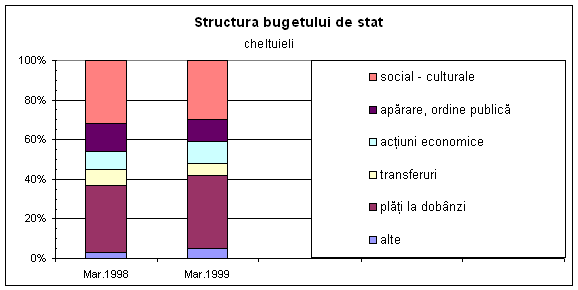 Componenta cea mia importanta a cheltuielilor bugetului de stat reprezentata de cheltuielile social - culturale, care si-au majorat usor ponderea în totalul cheltuielilor, mai ales pe seama cheltuielilor cu învatamântul.