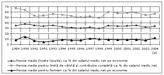 Pensia reala, īnsa, a scazut mai mult decāt salariul real: īn 2004, īn timp ce salariul real reprezenta 78% din valoarea sa din 1990, pensia reala reprezenta doar 58% din nivelul corespunzator anului 1990.