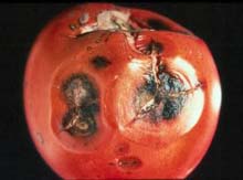 negru Boala se manifesta prin pete adancite si negre pe fructe.