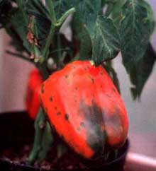fructelor ataca tulpinile, frunzele si fructele. Pe fructe apar