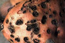 cartofului apare mai ales in verile ploioase si racoroase. Pe