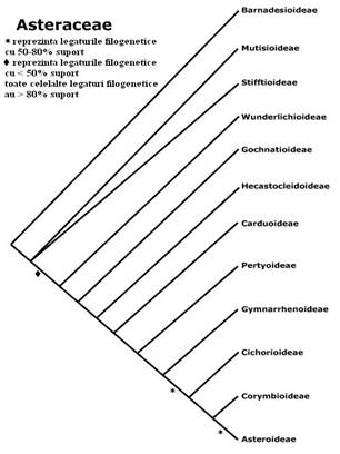 Din punct de vedere taxonomic asteraceele constituiesc una dintre cele mai mari si complexe familii însumând aproximativ 1000 de genuri cu cca 20 000 specii raspândite pe tot globul. Aflate în vârful arborelui filogenetic al dicotiledonatelor, asteraceele sunt relativ tinere fiind cunoscute ca fosile din Tertiar.