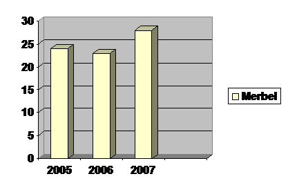 Figura 30. Productia obtinute la soiului Merbel (2005, 2006, 7007)