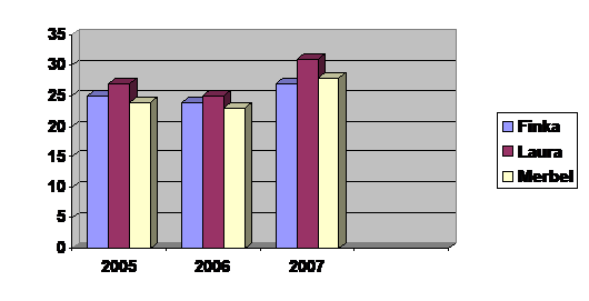 Figura 28. Productia obtinute la soiului Finka (2005, 2006, 7007)