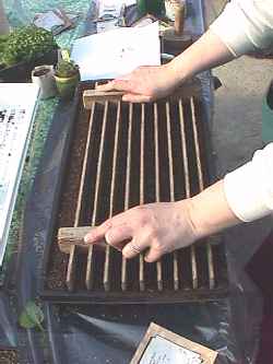Un mic dispozitiv realizat artizanal, cum este dispozitivul de presat din lemn , va poate ajuta sa faceti randuri drepte in rasadnita.
