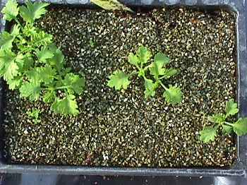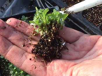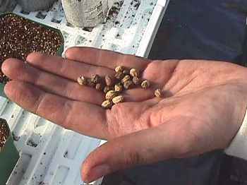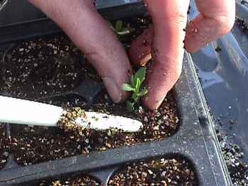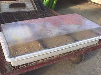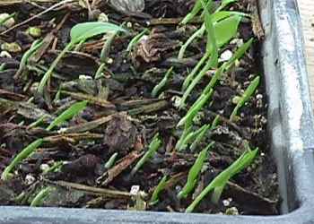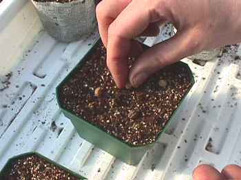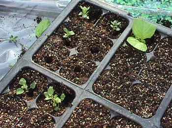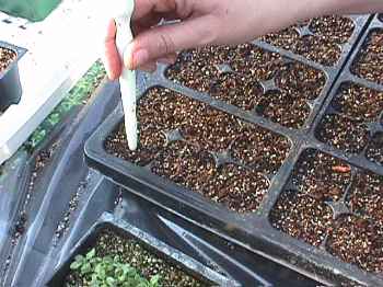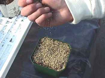 In cazul cand este nevoie de un numar mare de rasaduri se poate folosi o rasadnita cu pamant usor si sterilizat. Amestecurile obisnuite de pamant contin pamant de padure sau de telina, perlita (pietricele fine, N.T.) si turba macinata fin. Noi am utilizat pamant fin de horticultura si turba macinata.