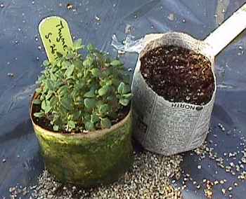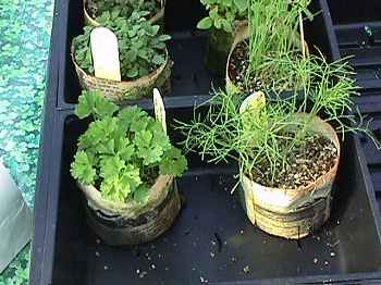Hartia de ziar va incepe sa se dezintegreze cam dupa 2 luni. In cazul exemplului din stanga semintele au incoltit cam in 6 sapatmani si hartia a inceput sa se distruga. In dreapta este un ghiveci in care s-au pus recent seminte de cimbru.