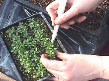 Dupa rasadire udati folosind un atomizor. Pamantul trebuie sa luceasca din cauza apei. Daca un rasad este aplecat intr-o parte folositi plantatorul pentru a-l aduce in pozitia verticala.
