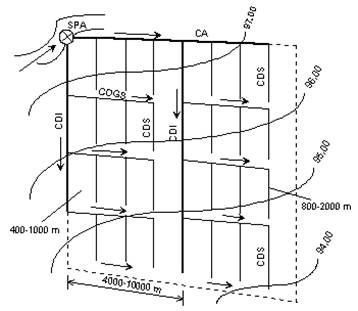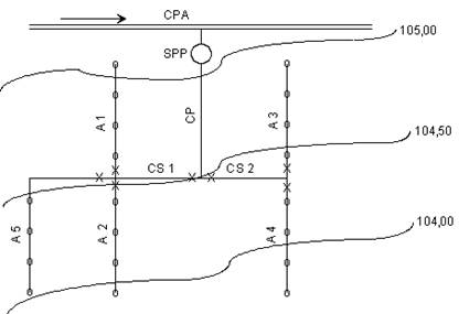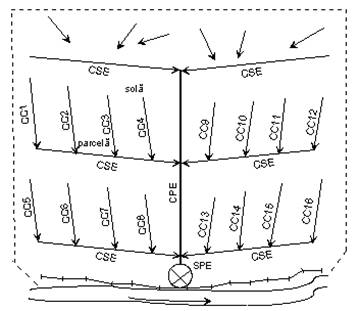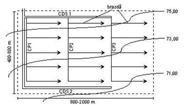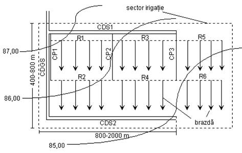 Fig. 8 - Amenajarea sectorului de irigatie prin schema longitudinala.