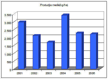 Productia medie cea mai mica a fost obtinuta in anul 1991 – 1454 kg/ha, iar cele mai ridicate productii au fost realizate in anul 1995 – 3903 kg/ha si in anul 1994 – 3283 kg/ha .