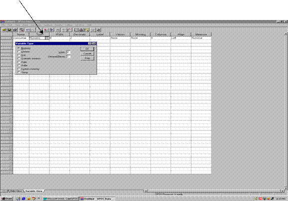 Introducerea datelor se face prin accesarea foii Variable View prin apasarea butonului cu acelasi nume (sageata 3 din figura 1).