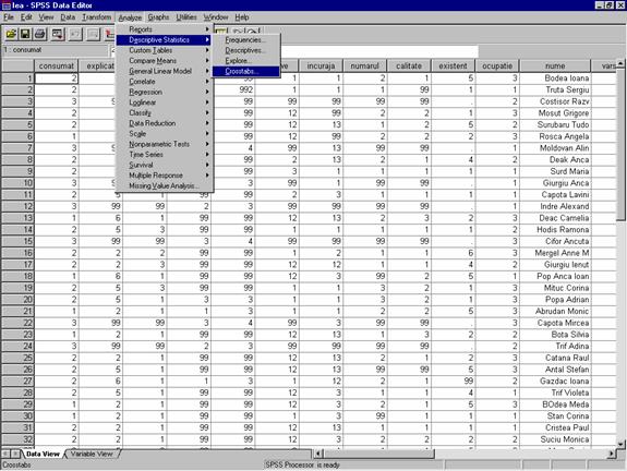 Demersul este urmatorul (Figura 35): Meniul Analyze Descriptive statistics Crosstabs