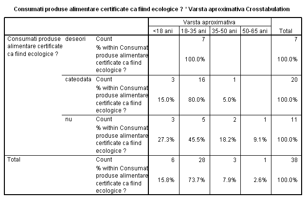 Astfel au fost primite 29 de raspunsuri pentru consumul frecvent de produse ecologice "deseori" de catre consumatorii cu vârste între 18-35 ani.