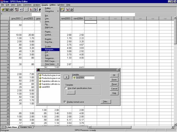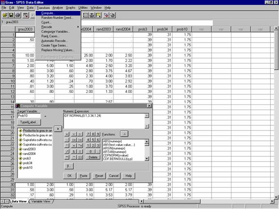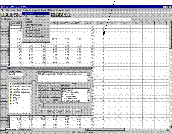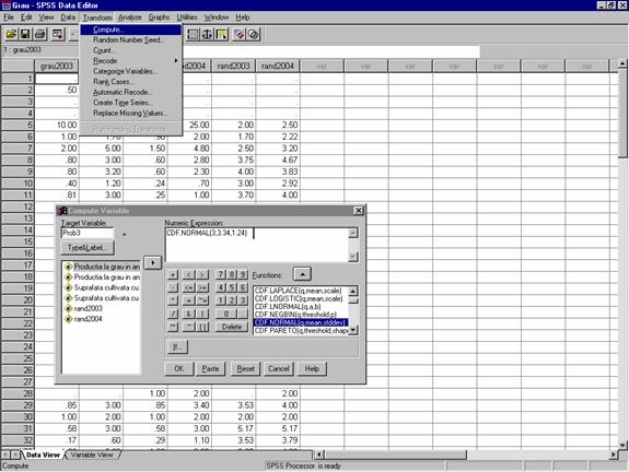 Calculul probabilitatilor pentru distributii normale folosind SPSS | ||
