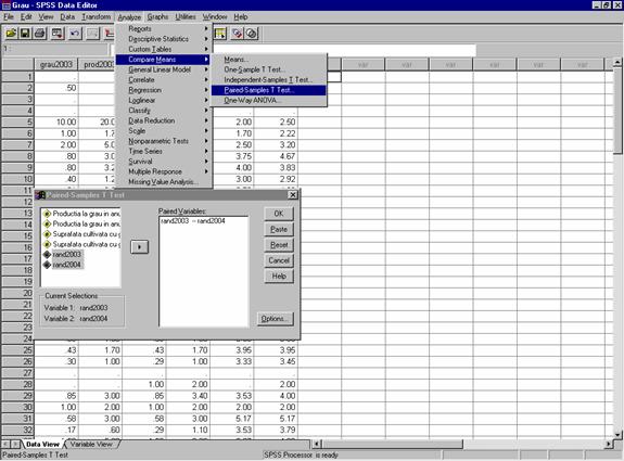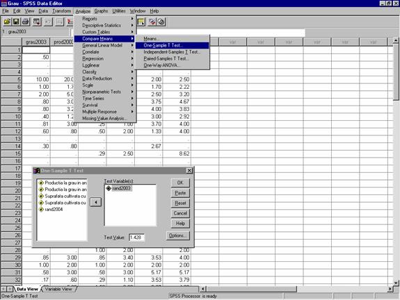 Exemplu: In baza de date Anuarul_statistic.sav gasi date preluate din anuarul statistic privind productivitatea medie la nivel national pentru diferite culturi între anii 1990 si 2003 .