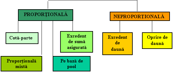 Dupa modul de repartizare a riscurilor intre reasigurat si reasigurator, contractele de reasigurare se clasifica astfel: