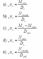 Pentru renta anuala imediata, posticipata, limitata la n ani, prima neta unica unitara platita de asiguratul īn vārsta de x ani, notata cu nax si calculata cu ajutorul numerelor de comutatie, este: