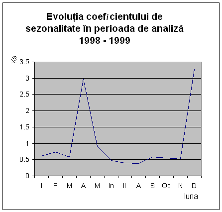 Din datele furnizate de tab. nr.2 " situatia vânzarilor lunare din produsul K ", din calculul ulterior al coeficientului de sezonalitate si reprezentarea lui grafica, din reprezentarea în coordonate polare a CA medii lunare în perioada de analiza a fost identificat produsul K ca fiind produsul de panificatie cu denumirea " cozonac ". Acesta concluzie fiind datorata gradului accentuat de sezonalitate a acestuia în lunile aprilie si decembrie - perioade de sarbatori religioase în care consumul acestui produs reprezinta o traditie în România.