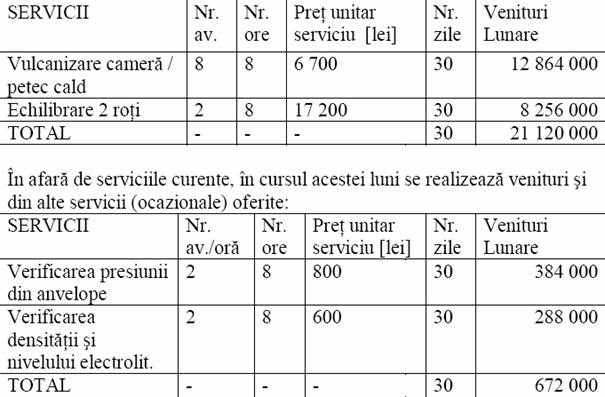 -echilibrari roti : 1%*150 av/ora*15 ore = 22 servicii/zi,
