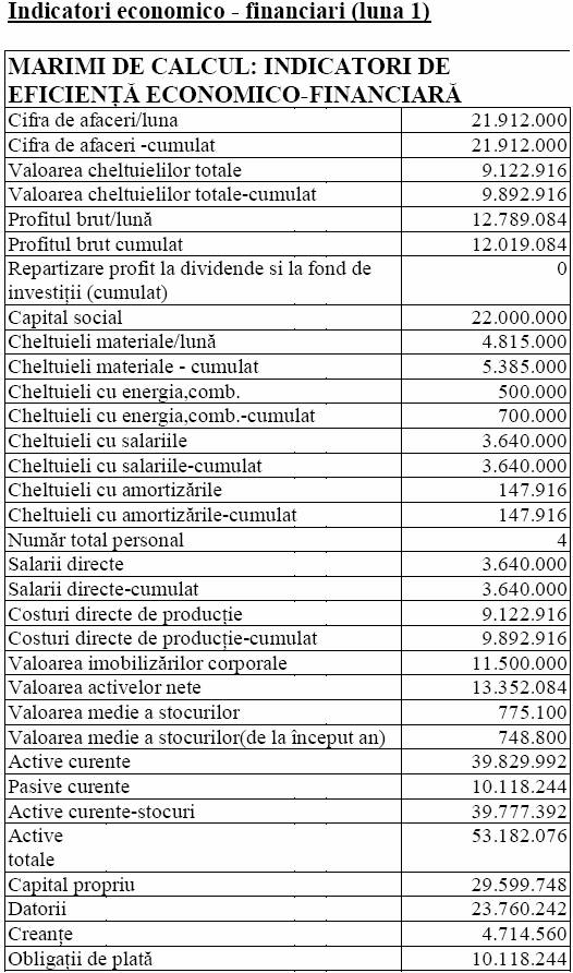 PROFITUL brut (contabil) luna 1 . .........................12 789 084