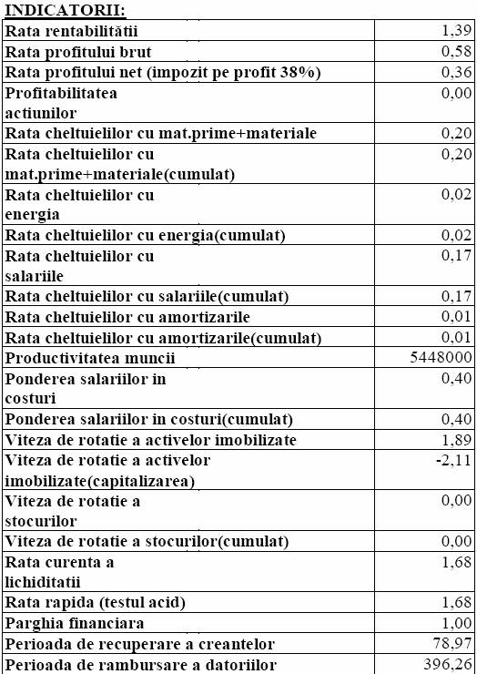 - reprezentarea grafica a evolutiei indicatorilor economico financiari