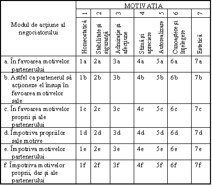 Prin combinarea acestor tipologii si niveluri rezultă o matrice cu 126 de cuburi separate, fiecare dintre ele reprezentând un mod specific de interactiune între negociatori, aflat la intersectia dintre un nivel de abordare, un tip de negociator si un tip de trebuintă. (Fundamentals of negociating, 1988. Gerard I. Nierenberg)