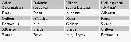 R. W. Schulte stabileste, pe bază experimentală, o scară a culorilor, împărtită în cinci clase, în care se cuprind o multime de nuante cromatice după valoarea lor perceptivă si aperceptivă.