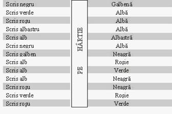 În general, scrisul de culoare întunecată ce apare pe fondul deschis (sau alb) creează o posibilitate de percepere mult mai mare decât gruparea lor inversă.