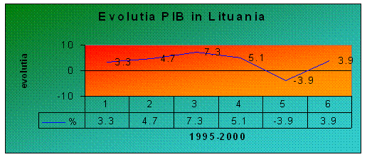 Produsul Intern Brut a 13313n137n l Romāniei variaza mai mult fata de cel al Lituaniei. Se poate observa ca in perioada 1997-1999 Romānia si Lituania se situeaza la poluri opuse. In medie, evolutia Produsului Intern Brut al Lituaniei este mult mai pozitiv decāt al Romāniei.