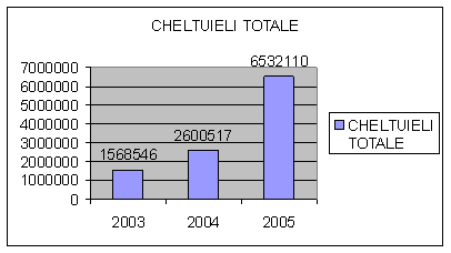 Cheltuielile totale inregistreaza deasemenea o evolutie in sensul cresterii anuale, insa cresterea lor este devansata de cresterea veniturilor totale, ceea ce duce la cresterea anuala a rezultatului brut al exercitiului.