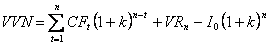 V0 - valoarea actuala a cash-flow-urilor viitoare (CFz), inclusiv a valorii reziduale (VRn);