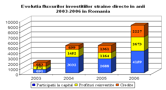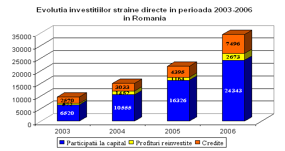 În perioada 2003-2006 investitiile straine directe în România au cunoscut amploare fata de perioada anterioara, astfel: