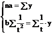 Parametrii a si b, in conditiile metodei celor mai mici patrate se determina rezolvand sistemul de ecuatii normale: