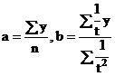 Parametrii a si b, in conditiile metodei celor mai mici patrate, se determina pe baza relatiilor