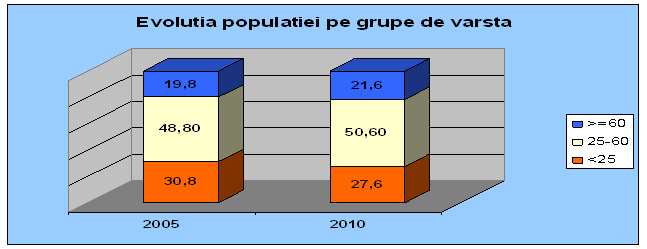 Populatia in varsta de peste 65 de ani reprezenta in 2004 15% din totalul populatiei si prognoza arata ca aceasta va reprezenta in 2030 - 2050 25% din totalul populatiei;