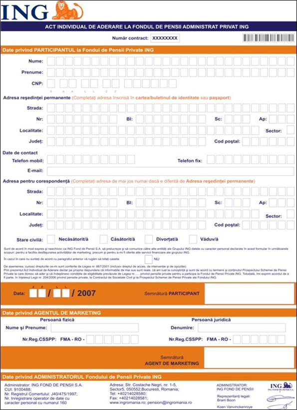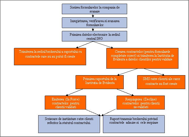 Administrarea contractelor de pensii ulterior momentului emiterii (dupa trimiterea scrisorilor de confirmare a participarii la fondul de pensii private ING) va fi realizata direct de catre divizia MidOffice.
