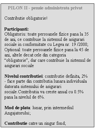 - facultativa: pentru persoanele pana in 45 de ani, care contribuie insa la sistemul public de pensii;