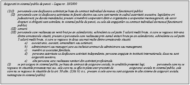- obligatorie: pentru persoanele pana in 35 de ani ce sunt inregistrate in sistemul public de pensii conform legii 19/2000;