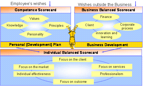 In final se realizeaza practic o sinergie intre sistemul BBS la nivel de firma si valorile, principiile, personalitatea si cunostiintele personale ale fiecarui angajat cu sopul definirii unui BBS la nivel individual care pune accentul pe: