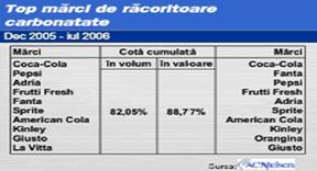 Piata bauturilor racoritoare a cunoscut o dezvoltare majora în ultimii ani, în special dupa anul 1990 când pe piata româneasca au patruns numeroase firme producatoare de bauturi racoritoare.
