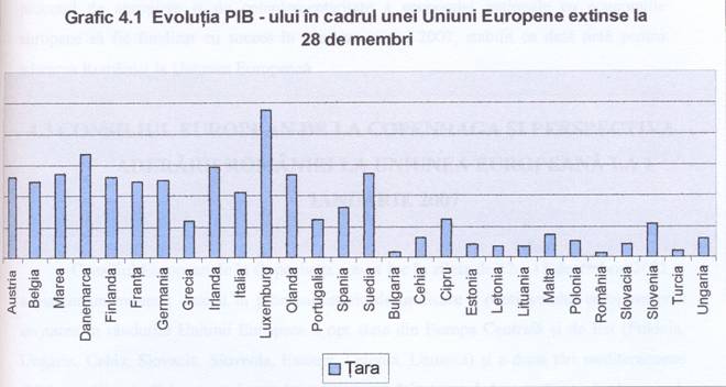 Pentru a analiza locul României în cadrul unei Uniuni Europene cu un numar de 28 de state membre este necesara, în primul rând, evaluarea rezultatului activitatii economice, respectiv a produsului intern brut pe locuitor. De asemenea, se vor avea în vedere si alti doi indicatori relevanti din punct de vedere al potentialului de dezvoltare economica a unei tari, si anume suprafata si populatia. Pentru fiecare tara cei trei indicatori mentionati vor primi în cele ce urmeaza note (ranguri) în functie de marimea lor, de la 1 la 28. Suma celor trei ranguri va indica locul pe care fiecare tara îl va ocupa în cadrul unei Europe extinse la 28 de state membre (datele acestei analize sunt redate în tabelul nr. 1).