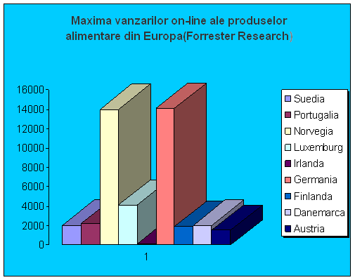 Maxima vanzarilor on-line ale produselor alimentare din Europa(Forrester Research)